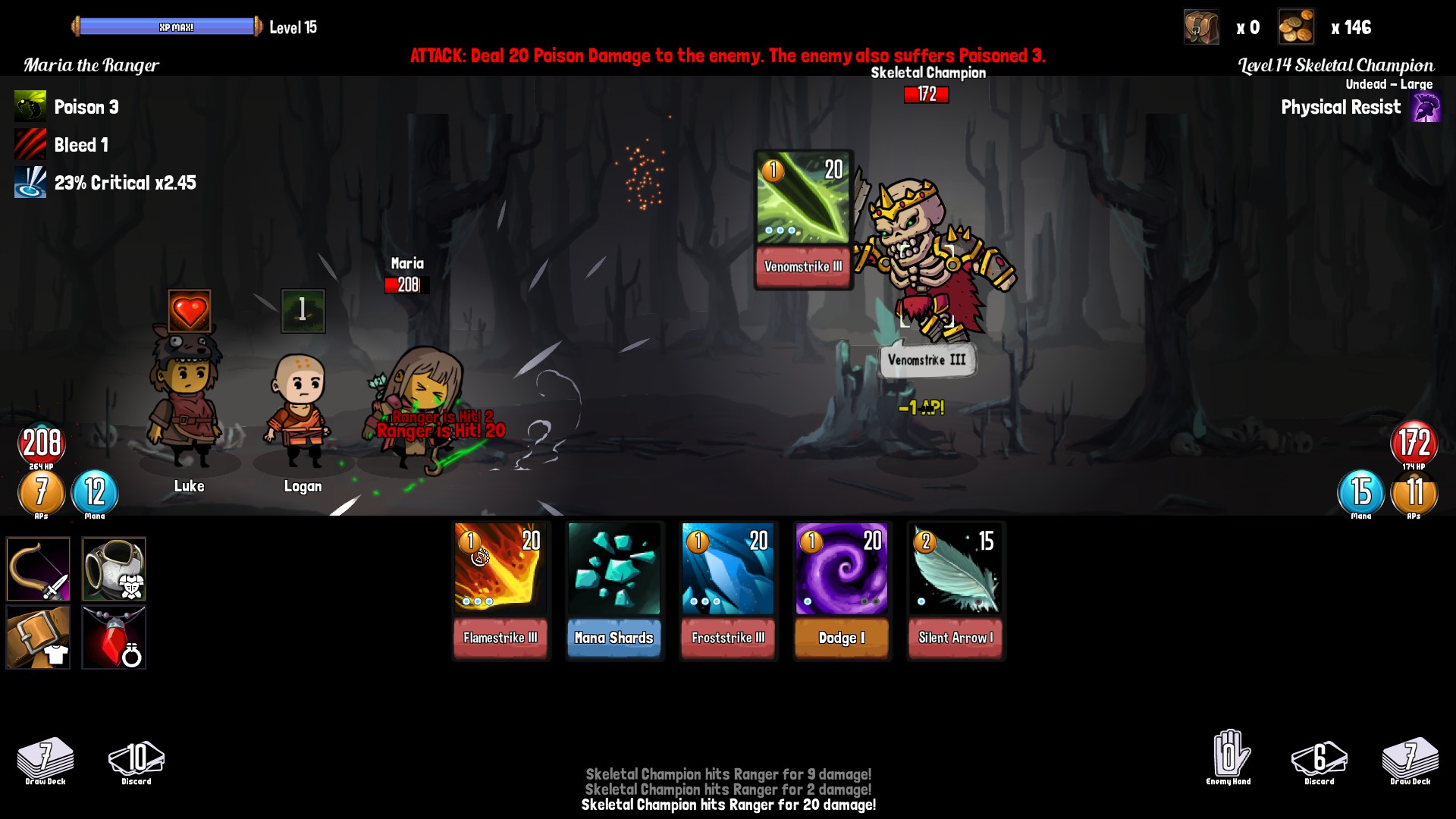 気になったのはやっぱりドロソの多さとカードの種類の少なさかな。ドローが多すぎてカード1枚1枚のバリューにあんまり重みが感じられない。お手軽にAPやMPを稼げるのもいかがなものかと思う。マナはこれくらい稼げないと20~40ポイント消費するレベルの魔法カードが活きないんでこれは問題ない。やっぱり気になるのはAP回復手段がかなりお手軽に入手できること。何ならコンパニオン次第で毎戦1ドロー1APくれるんで大味が過ぎる。もう少しバリューを評価するゲームバランスにしたほうが良かったと思う。